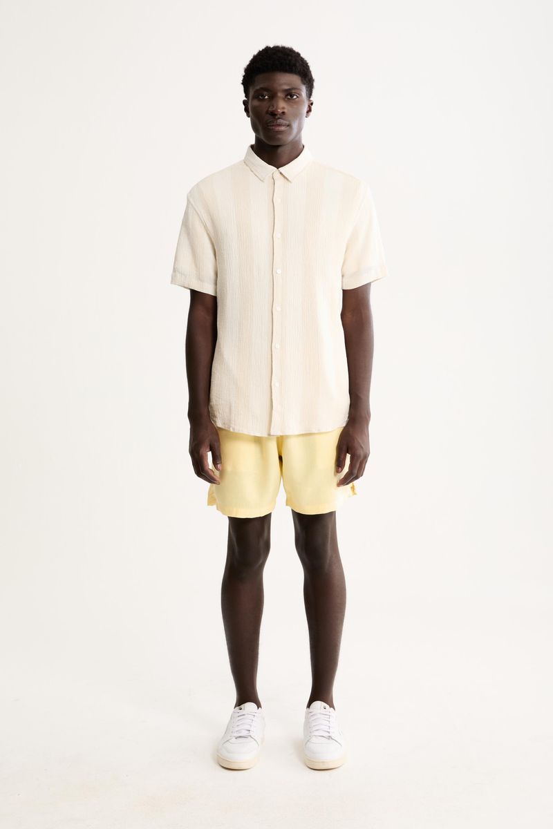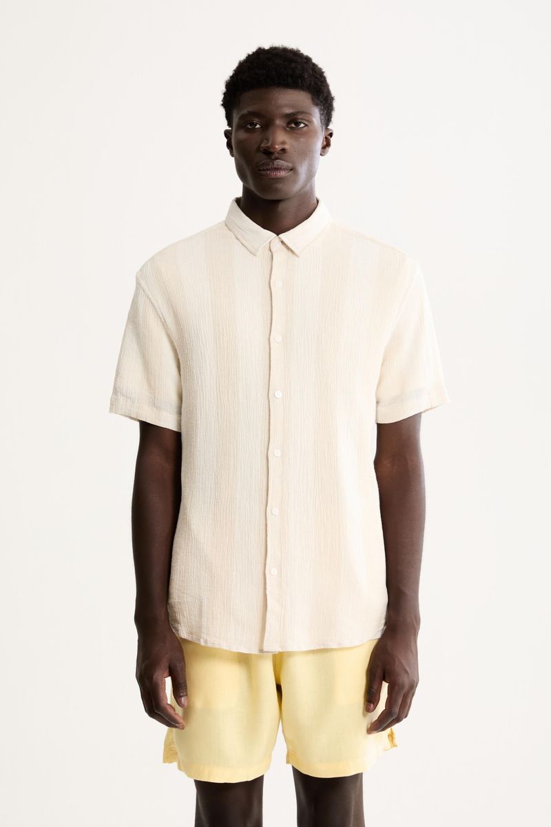 Camisa Manga Curta Linho Stripes é confeccionada em crepe de linho e algodão, com listras verticais exclusivas Foxton que conferem um visual clássico e elegante. A modelagem regular contemporânea oferece caimento equilibrado, mantendo conforto para climas quentes.