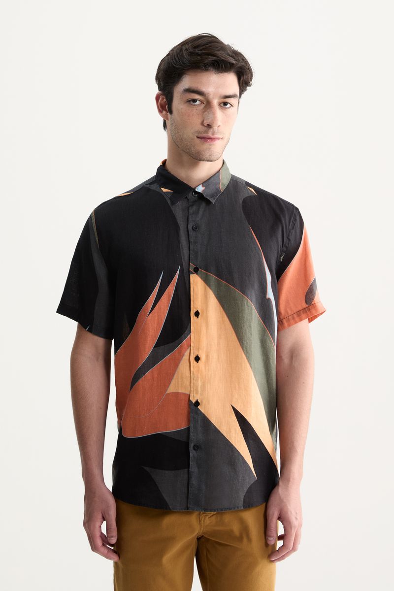 A Camisa Manga Curta Puro Linho Heliconia traz personalidade para sua produção de verão. Com estampa exclusiva de helicônias e elementos gráficos, ela é confeccionada em 100% Linho Puro de fibra longa, que permite que o tecido seja impecável, sem imperfeições, e mais resistente ao longo do tempo.
