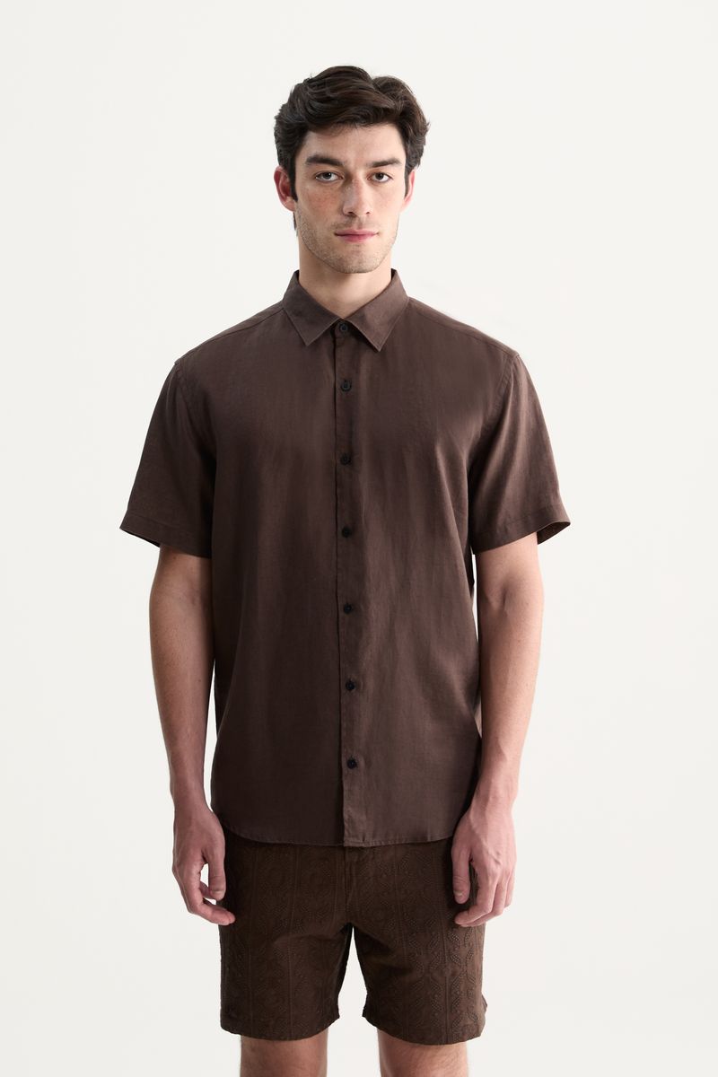 A Camisa Manga Curta Puro Linho Lumiar possui modelagem casual e clássica trazendo sofisticação e elegância para qualquer ocasião.