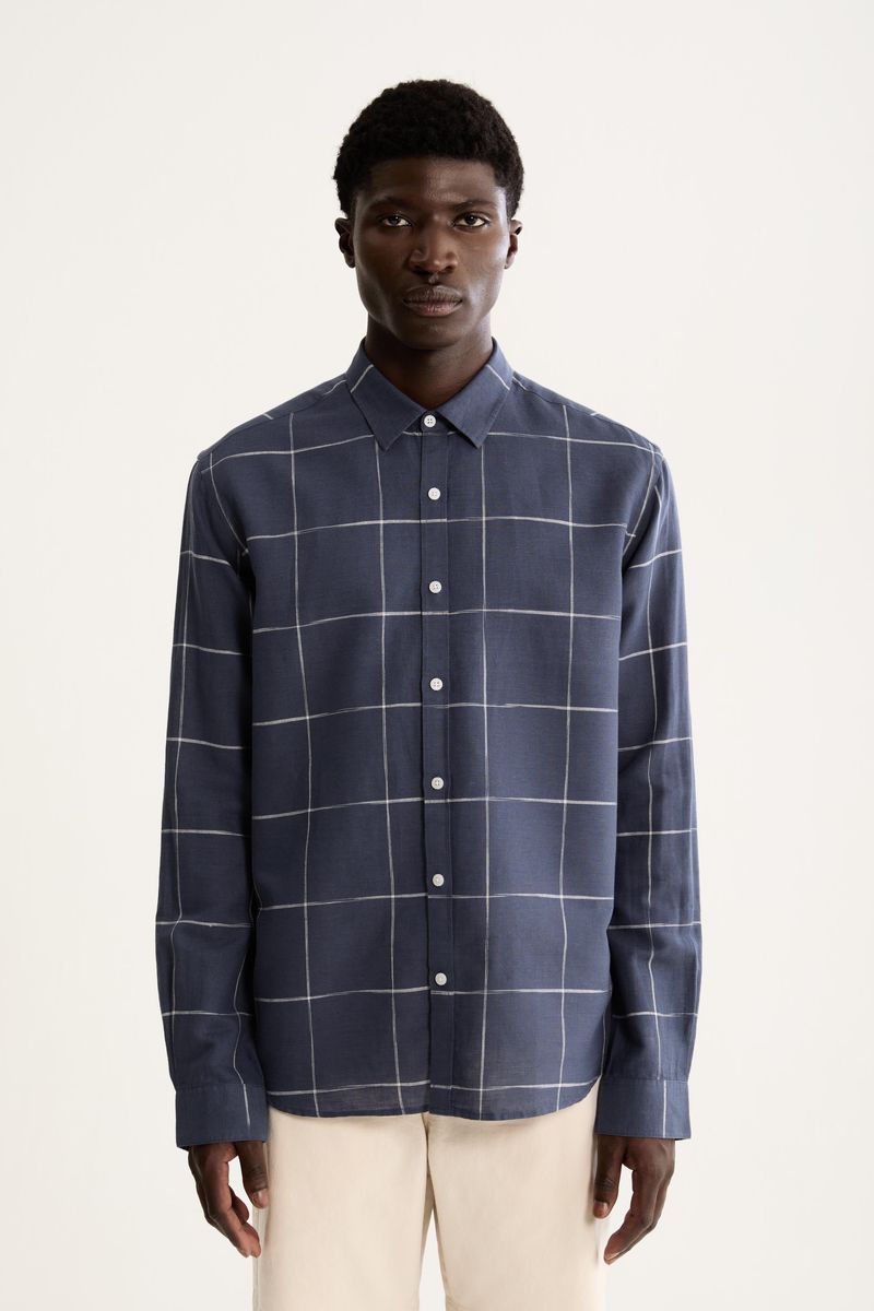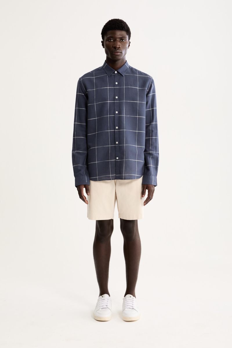 Camisa Manga Longa Linho Xadrez Summer é confeccionada em base de linho misto (60% linho, 40% algodão), com um desenho de fio tinto diferenciado exclusivo da Foxton. A técnica de fio interrompido, que mescla diferentes espessuras no mesmo fio, produz um efeito visual único e sofisticado. A modelagem regular urbana oferece caimento limpo e agradável ao toque, ideal para quem busca conforto aliado a um estilo contemporâneo.
