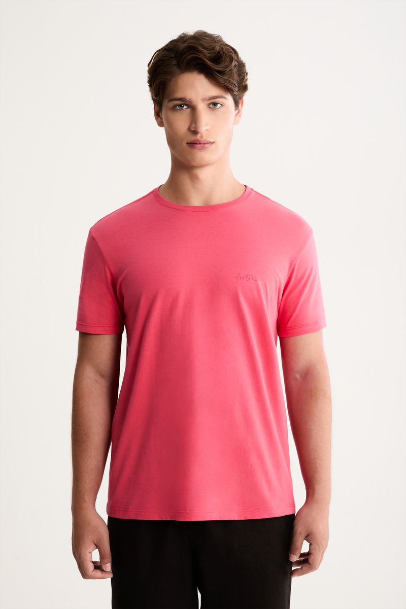 O caimento regular é confortável, com mangas curtas e gola arredondada. O corte reto acompanha o corpo sem marcar, e o logotipo discreto no peito adiciona identidade sem excessos, tornando a peça versátil para várias ocasiões.