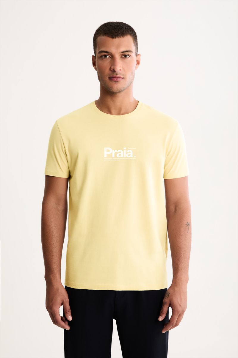 Camiseta Praia é confeccionada em malha com fio penteado de alta qualidade, 100% algodão, oferecendo toque macio e resistência para o dia a dia. O grafismo central com o nome Praia cria um ponto focal discreto e elegante, enquanto o acabamento de tingimento com corante reativo ajuda a manter a aparência após várias lavagens. O caimento regular proporciona conforto em qualquer momento.