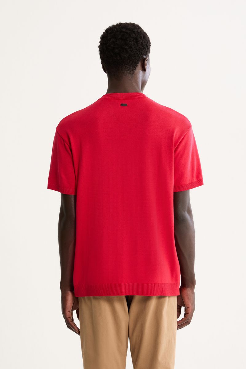 Confeccionada em tecidos selecionados, entrega leveza e modernidade. Família tricot basic, ponto de tricot em canaleta fina, peças com toque macio especial, modelagem regular contemporânea.