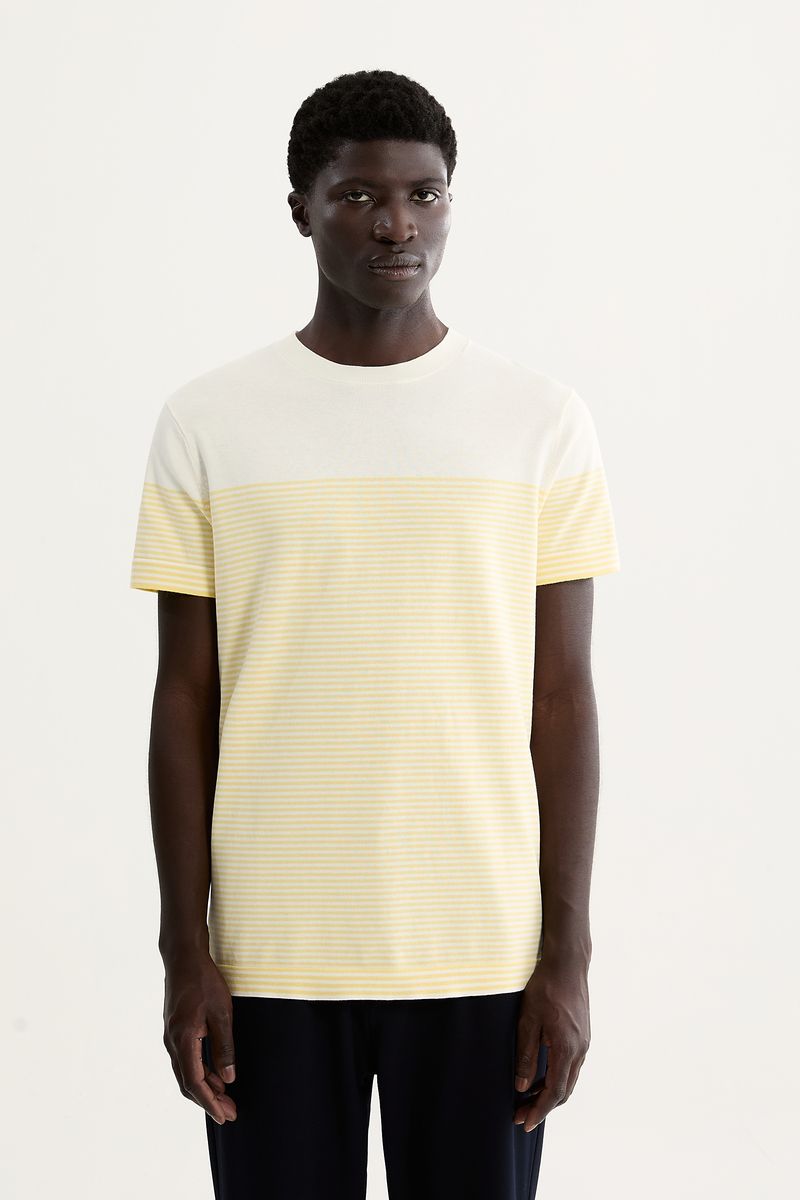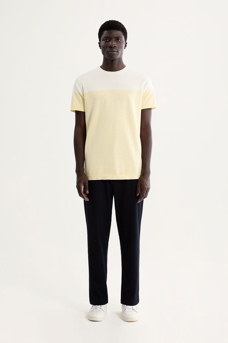 Camiseta Tricot Listra Navy é uma peça de tricot em 100% algodão, com listra localizada e um bloco sólido no peito que confere identidade moderna sem perder a elegância. A gola careca reforça um visual clássico, enquanto o caimento ajustado oferece conforto com uma silhueta contemporânea. Pensada pela Foxton para o dia a dia, combina bem com diversas alternativas de estilo.