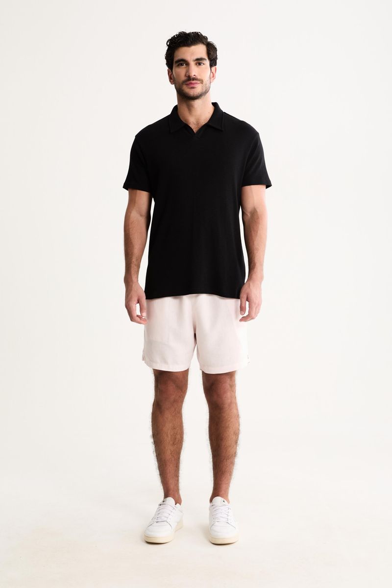 O design privilegia a gola clássica sem botões e mangas curtas, oferecendo um visual limpo e contemporâneo. O tecido, leve e respirável, aliado ao caimento ajustado, proporciona conforto diário, permitindo movimentos naturais sem perder elegância.